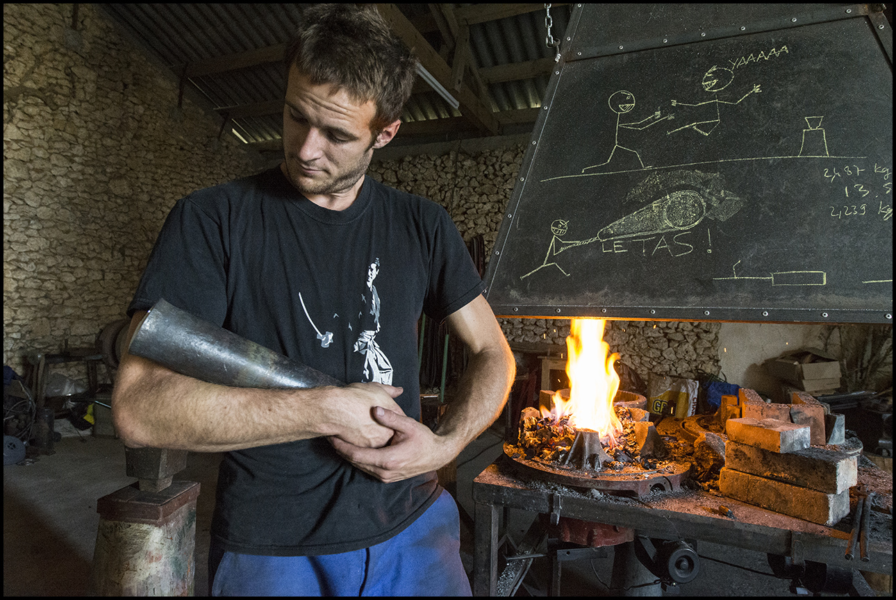Karel est heureux de vous annoncer la naissance de Grotas, son tas forgé pendant son stage dans un axe de grue de 80mm de diametre :)